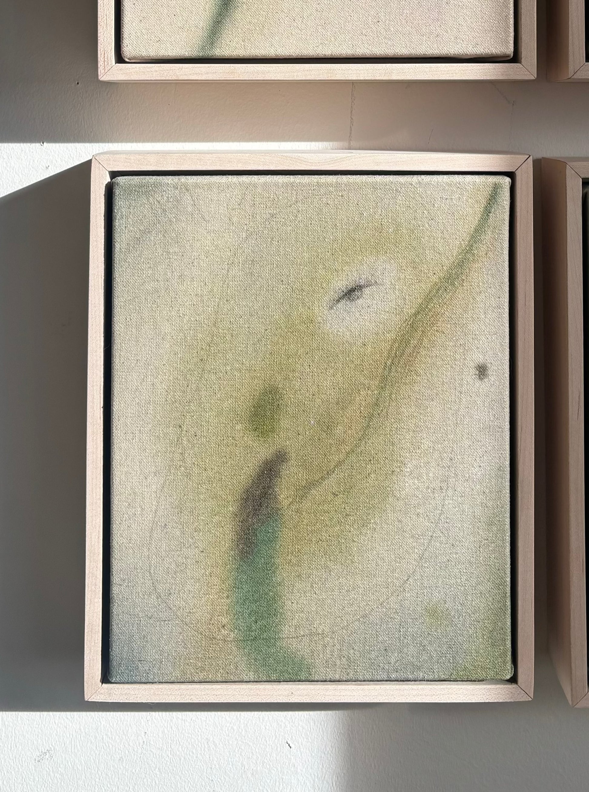 Acrylic on raw canvas. Framed in pale maple.
